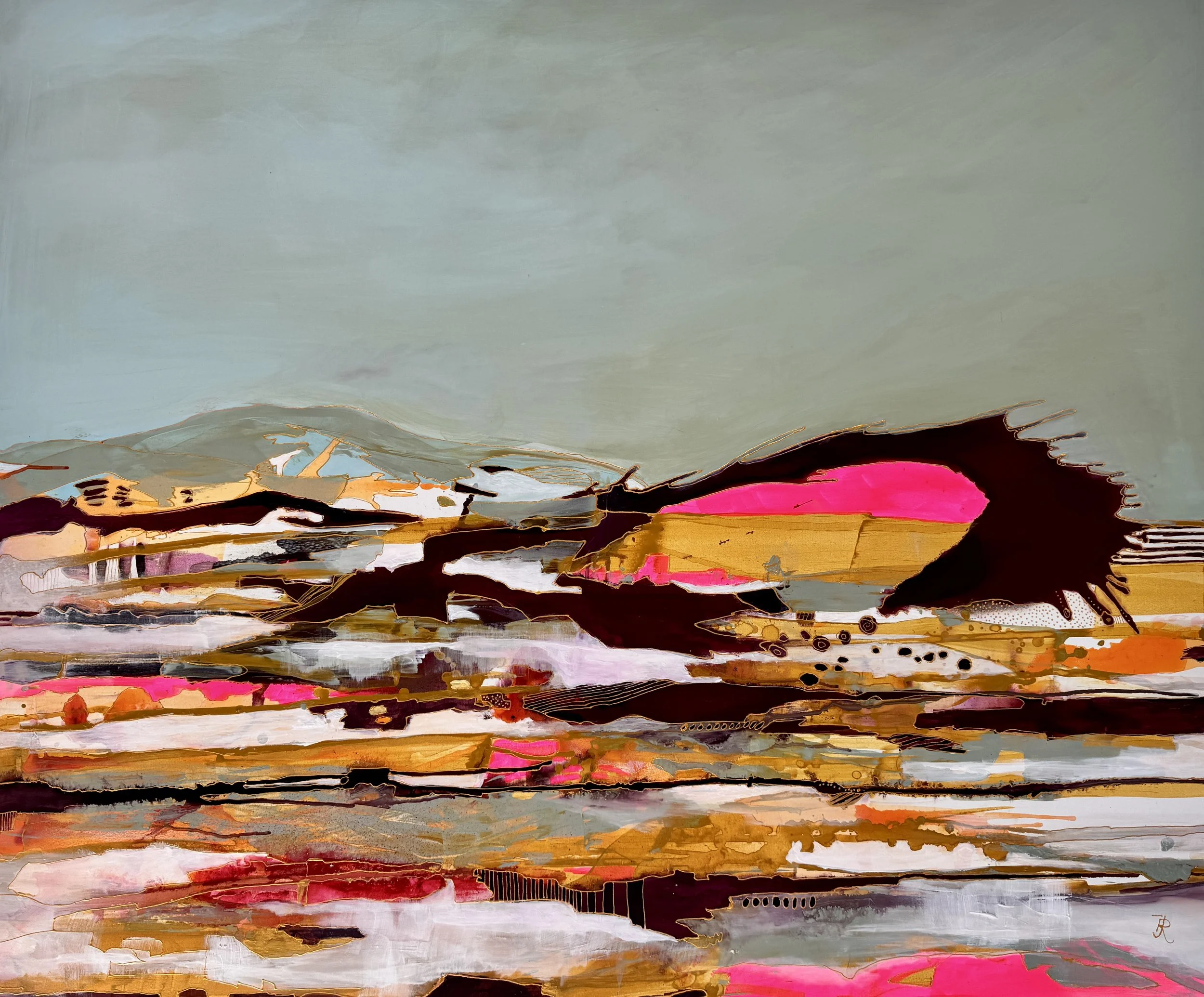 Die Farben der Teichlandschaft im Winter sollten sich in diesem abstrakten Werk widerspiegeln. Die Neonfarben erzeugen eine moderne Interpretation.