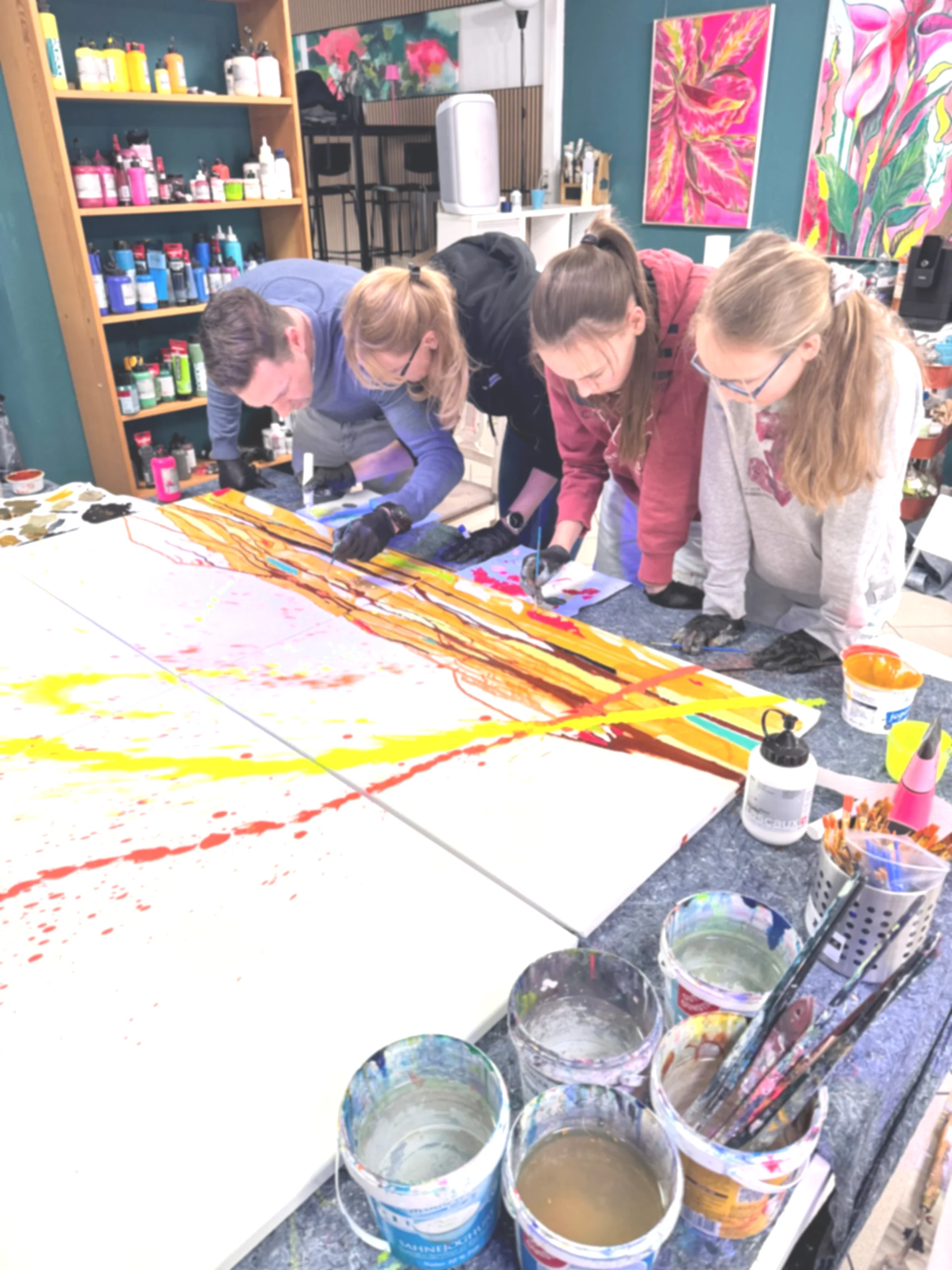 In meiner Private Art Experience erlebt ihr, wie Farbe Menschen verbindet – ob als Paar, Familie oder Eltern-Kind-Team.
