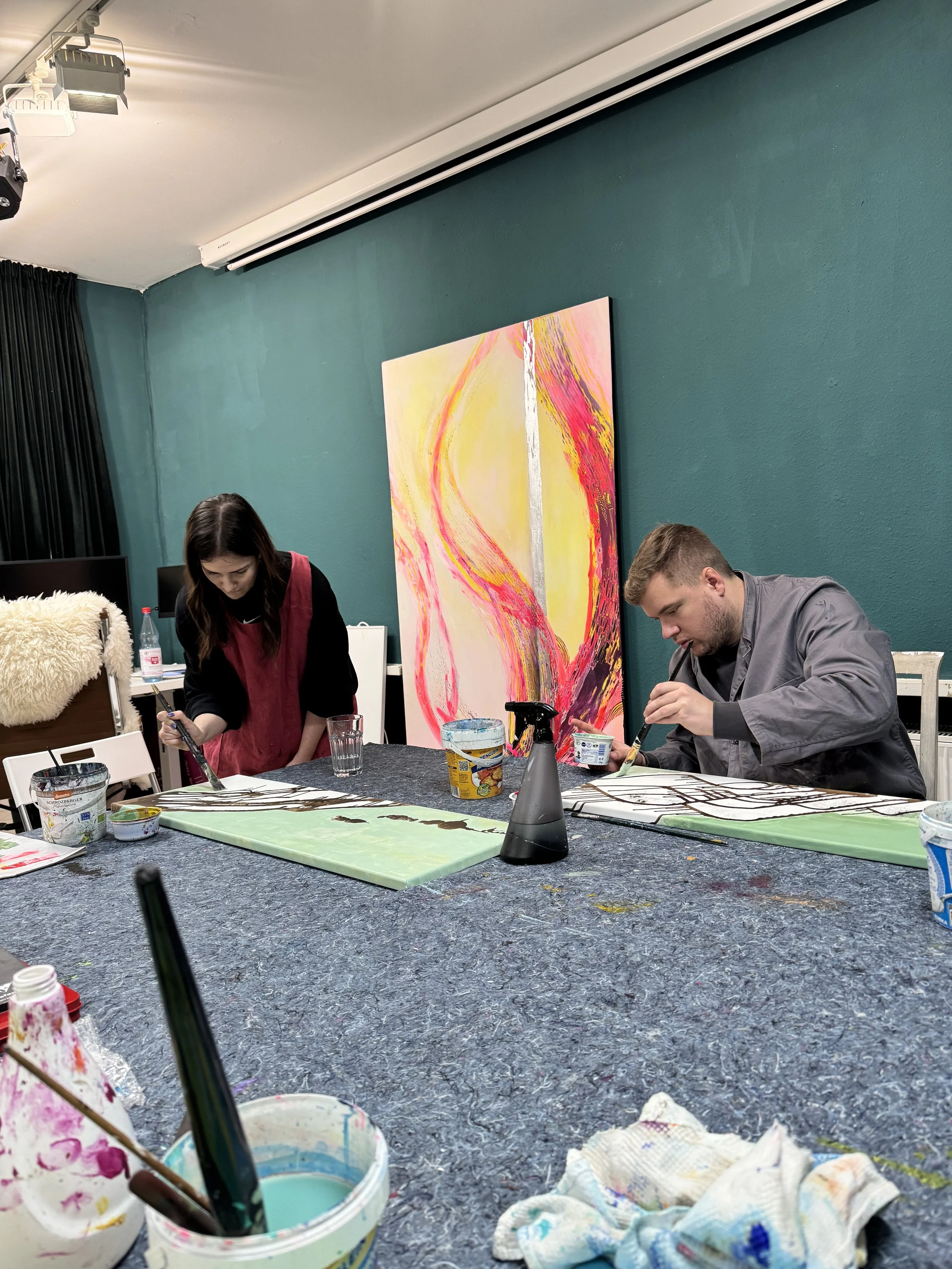 Ihr malt gemeinsam auf einer Leinwand, spürt den Moment, lacht und entdeckt euch neu.